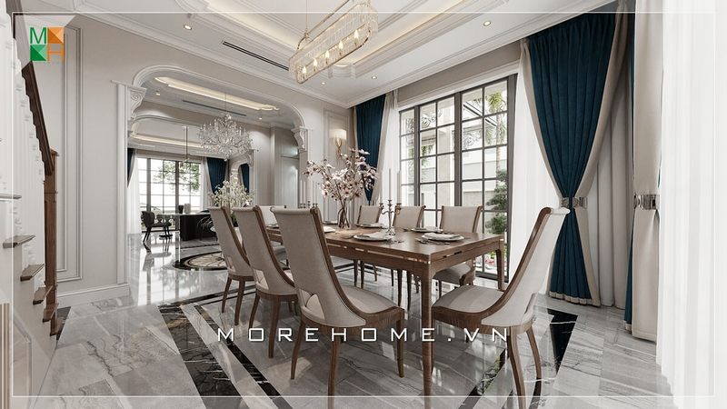 Mẫu bàn ăn cao cấp, sang trọng và tiện nghi cho phòng ăn biệt thự