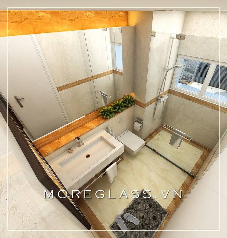Mẫu thiết kế nhà tắm kính đẹp có vẻ đẹp tinh tế, sang trọng nhưng không làm cho phòng tắm nhỏ trở nên bí bách.